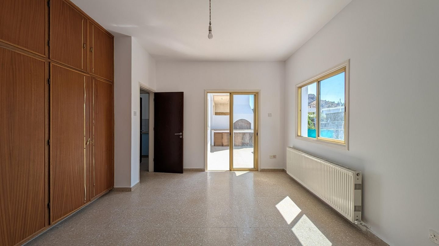 We are delighted to present a unique opportunity in the picturesque village of Kornos, Larnaca – a ground floor house with an adjoining shop, occupying a 1/2 share of a generous 880 sq.m. plot (equivalent to 440 sq.m. of land). The property is located just 70m southwest of the church of Ayios Prodromos, along Grigoris Afxentiou Street, with easy access to the Kornos–Delikipos road only 600m away. Nestled in a tranquil yet central area, it blends village charm with accessibility. Key Features: • 3-bedroom ground floor house, built in 1980, of 150 sq.m. of internal area • Layout includes an open plan sitting and dining room, kitchen with dining area, bathroom, guest toilet, laundry room, and three comfortable bedrooms • Attached shop (28.5 sq.m.) with a private entrance, open-plan interior, and bathroom – ideal for personal business use or rental income • Outdoor areas feature a covered veranda (23.5 sq.m.), uncovered verandas for both house (11.5 sq.m.) and shop (9 sq.m.), a private yard, and a covered parking space Don’t miss out on this rare opportunity to own a unique property in one of Cyprus’s most charming villages. The property falls within Zone H2, with a building coefficient of 90%, coverage of 50%, and permission for 2 floors (8.3m) of construction. There is a Distribution Agreement in place. Energy Category: E