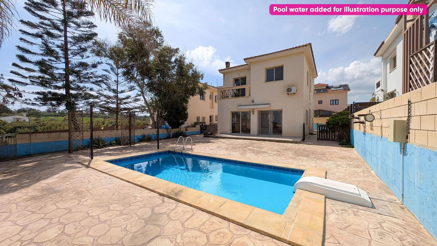 Located in a quiet residential complex in Ormidia, this well-maintained two-storey detached house offers comfort, privacy, and excellent accessibility—just minutes from the Larnaca–Ayia Napa motorway and close to local amenities. Property Highlights: • Plot: 354sq.m. • Enclosed Area: 153sq.m. • Yard: 219sq.m. • Bedrooms: 3 • Swimming Pool: 24sq.m. • Uncovered Verandas: 29sq.m. Internal Layout: The home features a bright open-plan kitchen, living, and dining area with a fireplace, along with a guest WC on the ground floor. Upstairs, there are three bedrooms, including a master with en-suite shower, a main bathroom, and verandas. Exterior: The property enjoys a private yard, swimming pool, and uncovered parking. Location: • Approx. 480m northeast of the Larnaca–Ayia Napa motorway • Approx. 375m southwest of Ormidia's Primary School A great opportunity to own a comfortable home in a peaceful yet well-connected location There is a separate title deed for this property. Pending issuance of Energy Performance Certificate.