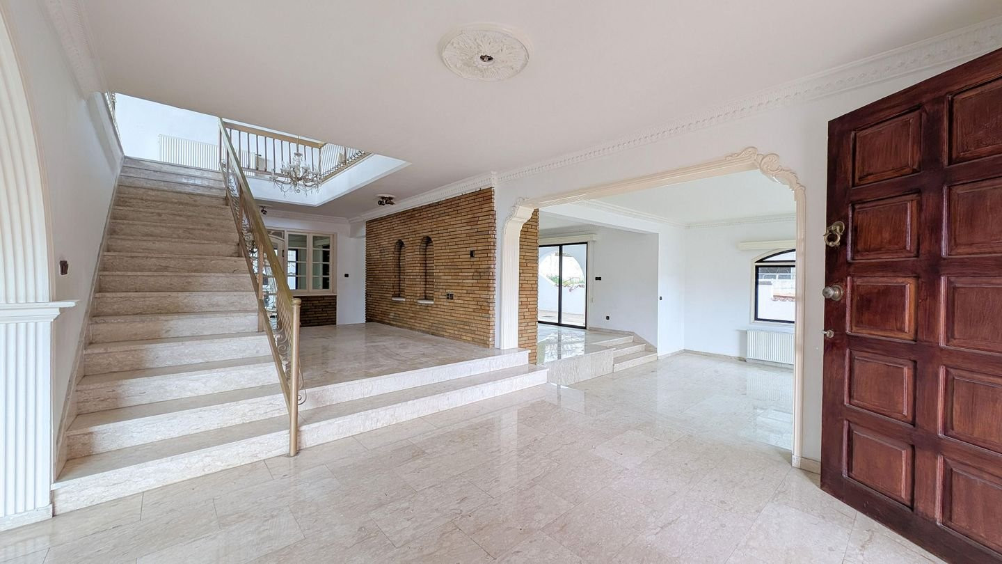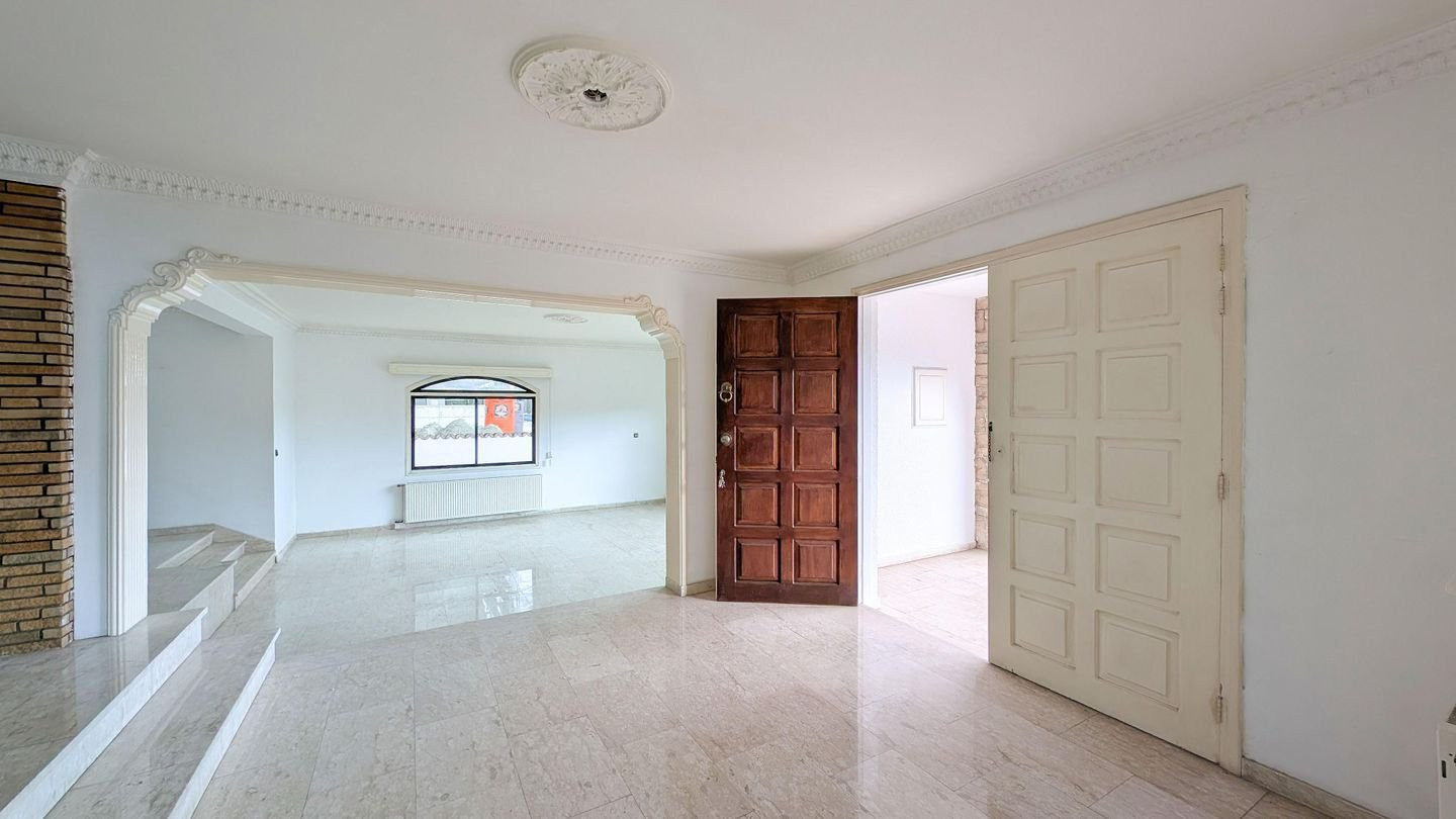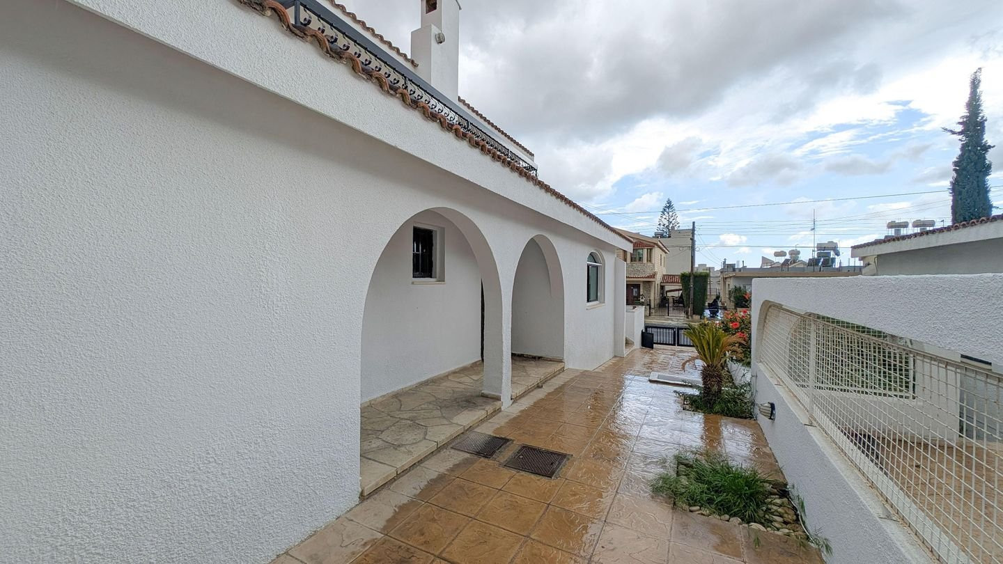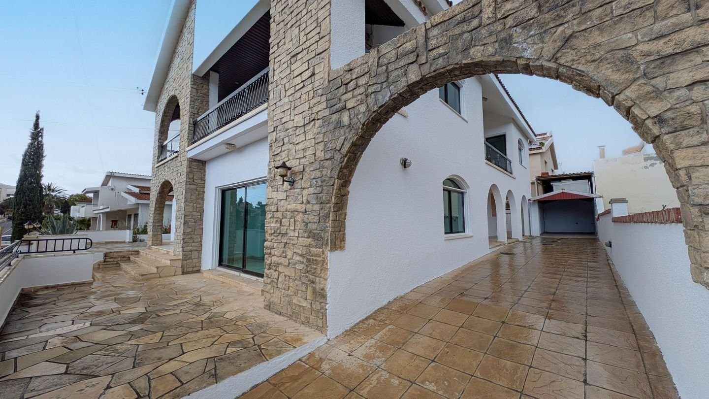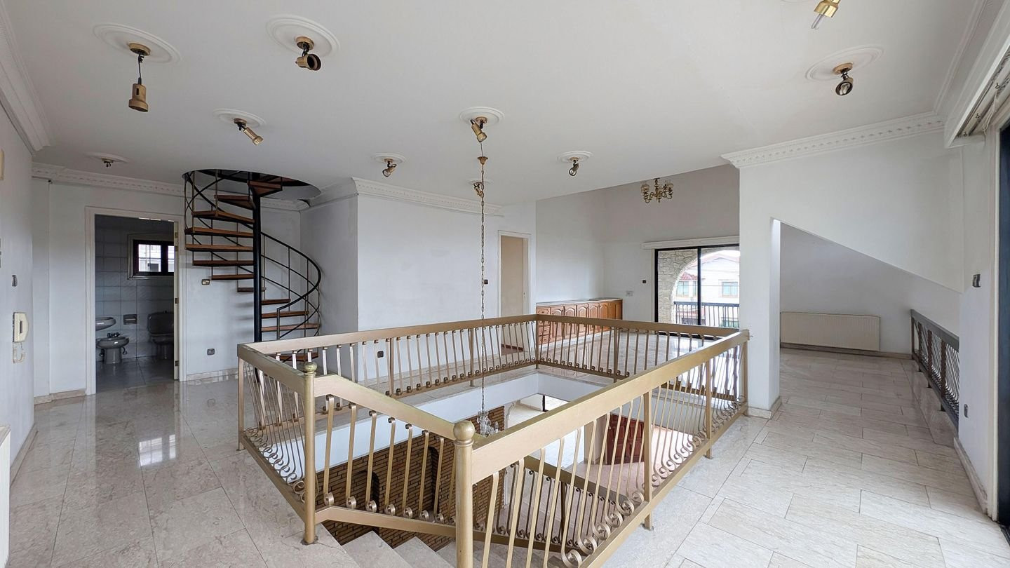 Stunning Three-bedroom detached house with attic on a large plot, located in Agia Fylaxi / Agios Georgios Quarter in Limassol Municipality. Property Highlights: • Land Area: 521sq.m. • Total Covered Area: 332sq.m. • Covered veranda: 75sq.m. • Uncovered veranda: 14sq.m. • Attic: 45sq.m. Internal Layout: • Ground Floor: Features an entrance area, spacious living room, lounge, formal dining room, kitchen with informal dining area, laundry room, and guest toilet. • Upper Floor: Boasts 3 spacious bedrooms, including a master bedroom with en-suite bathroom and walk-in wardrobe, plus a shared family bathroom and additional sitting area. • Attic: Open-plan attic space with water tank room, accessed via spiral metal staircase, suitable for playroom, office, or storage. • External: Outdoor BBQ area and auxiliary covered parking. Location: • Approx. 360m west of Tsirio Stadium. • Approx. 395m northeast of the 25th Primary School of Limassol. • Approx. 275m west of Apollonia Student Halls, with easy access to central Limassol and surrounding amenities. Pending issuance of Energy Performance Certificate.